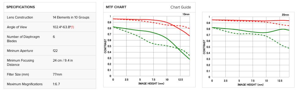 Wide angle of view (102.4 degrees at 10 millimeters and 63.8 degrees at 20 millimeters) offers the photographer greater freedom of expression.