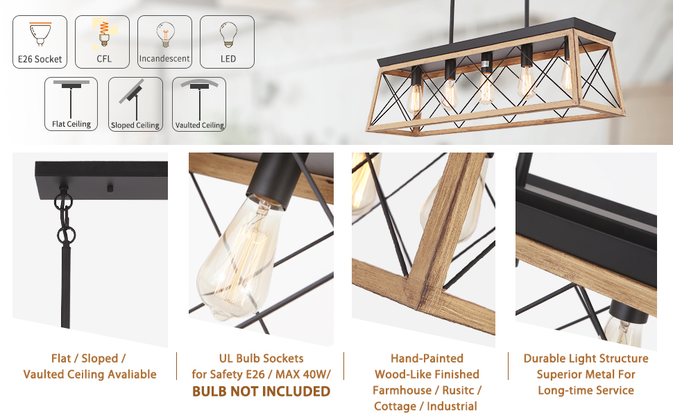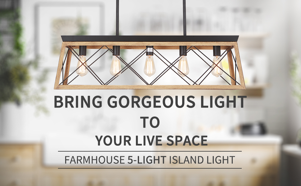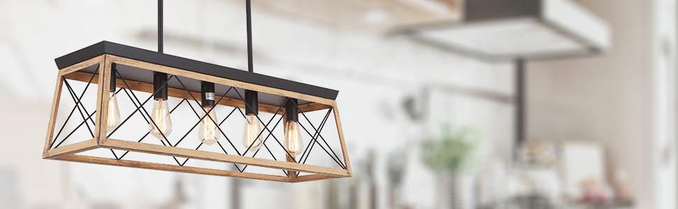 - 【Save Your Budget】- This Farmhouse rustic Island Light is designed and hand-painted with wook-liked finish, you can save you budget and own a real wood-like island light at the same time.